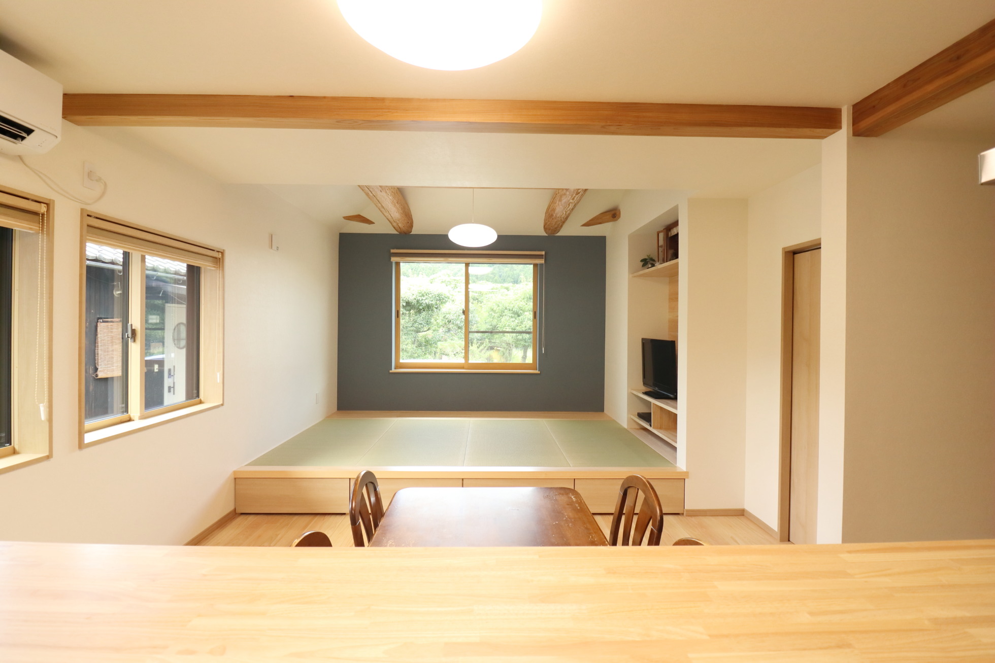 詳細 | 古き良き味わいと、最新の快適さが融合したこだわりのリノベーション空間をつくりました。 天井の梁を晒すことで、木の質感と温もりが感じられ、自然素材の魅力を存分に味わえる住まいです。 又、国産桧を贅沢に使用した床材が、空間に和の趣を演出し、経年変化も楽しめる、長く愛せる住まいです。 |